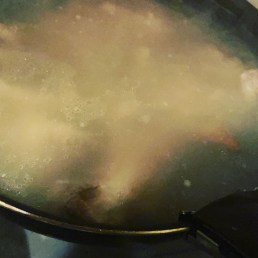 豚骨をゆっくり煮込んでます