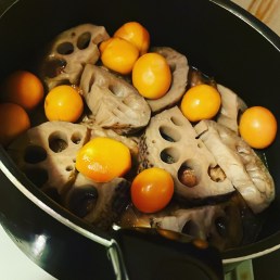 今日のランチはとりつくねと金柑、蓮根の炊き合わせ