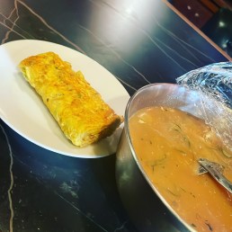 冷や汁だけだと寂しいのでネギたん塩と高菜のだし巻き玉子付けます